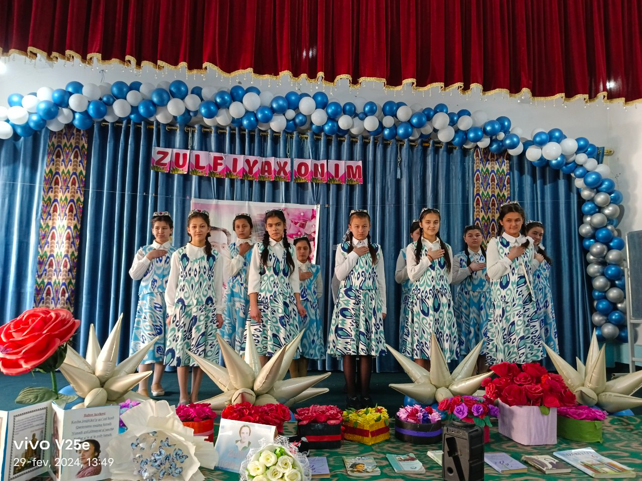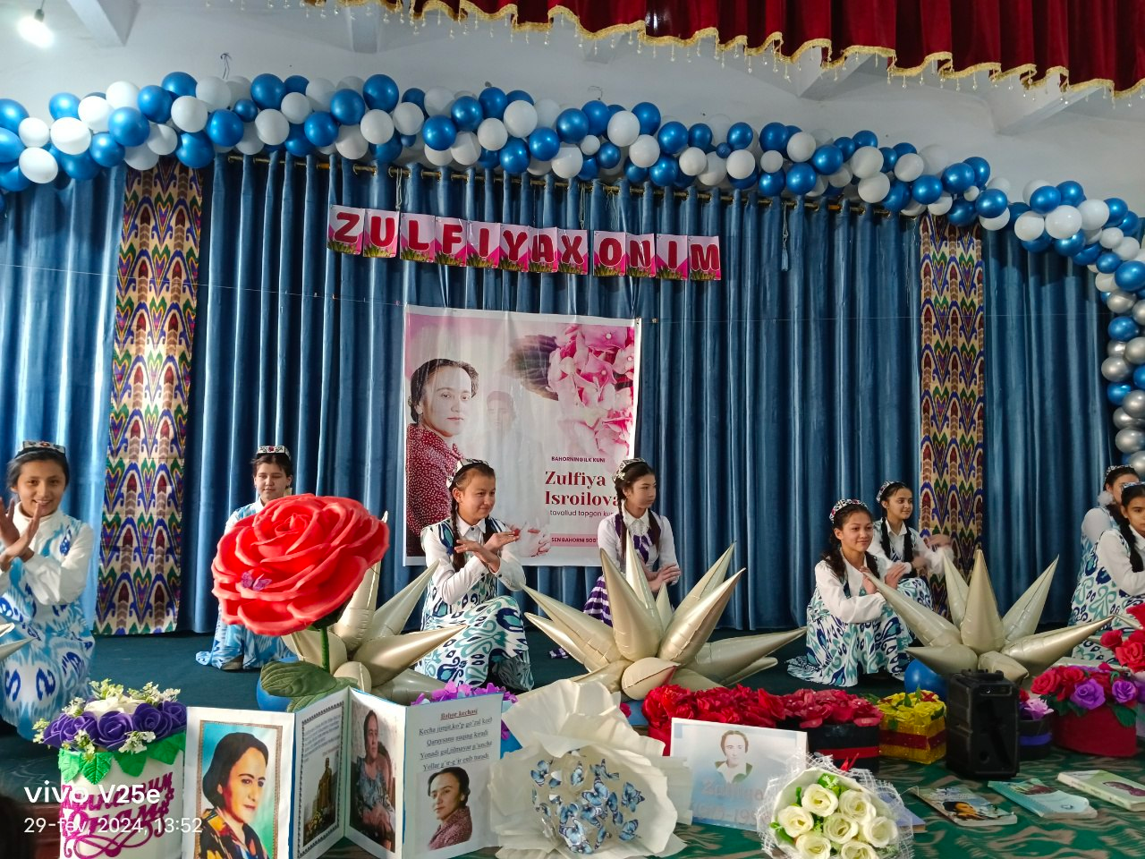 Xorazm viloyati Xonqa tumanidagi 5-son umumiy oʻrta taʼlim maktabida oʻzbek xalqining sevikli shoirasi Zulfiyaxonim tavalludiga bagʻishlangan tadbir boʻlib oʻtdi. Oʻqituvchi va oʻquvchilar oʻzlarining sheʼr, raqslarini ijro etishdi. Tadbirni ona tili va adabiyot fani oʻqituvchisi Iroda Nurullayeva koʻtarinki ruhda oʻtkazdi.